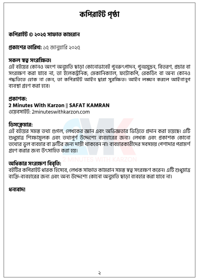আপনার কনফিডেন্স বুস্ট করার জন্য আমি সূচিপত্র সহ প্রথম কিছু পেজ দিয়ে দিচ্ছি। আপনার সাফল্যের পথ চলা শুরু এখান থেকেই
